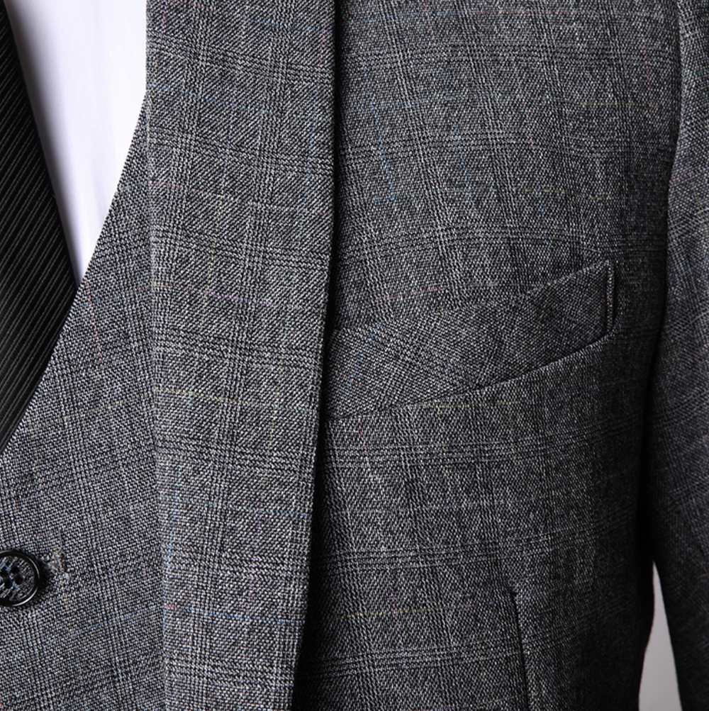 The three-piece suit Charlie is made from high-quality fabrics that offer both comfort and durability. With a slim-fit jacket, vest, and trousers, you can effortlessly create a coordinated and stylish outfit. The subtle design and precise details give the suit an elegant look, while the breathable fabric keeps you cool on long days. A must-have for the modern gentleman.